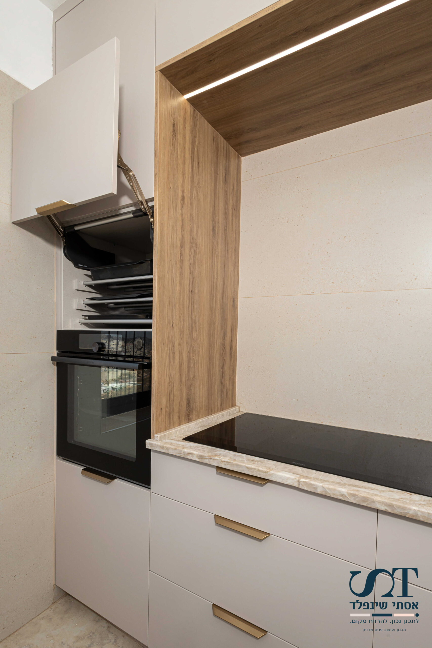 לצורך הנחת התבניות עשינו מעל התנור ארון עם מסילות להכנסת תבניות רותחות עד להתקררות